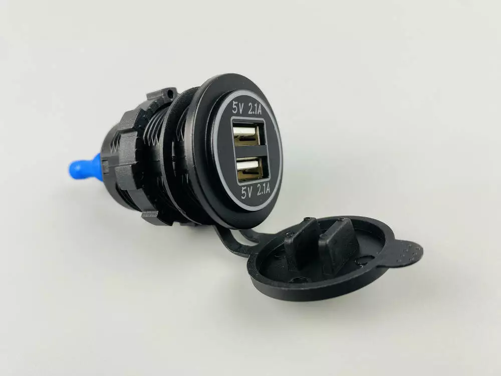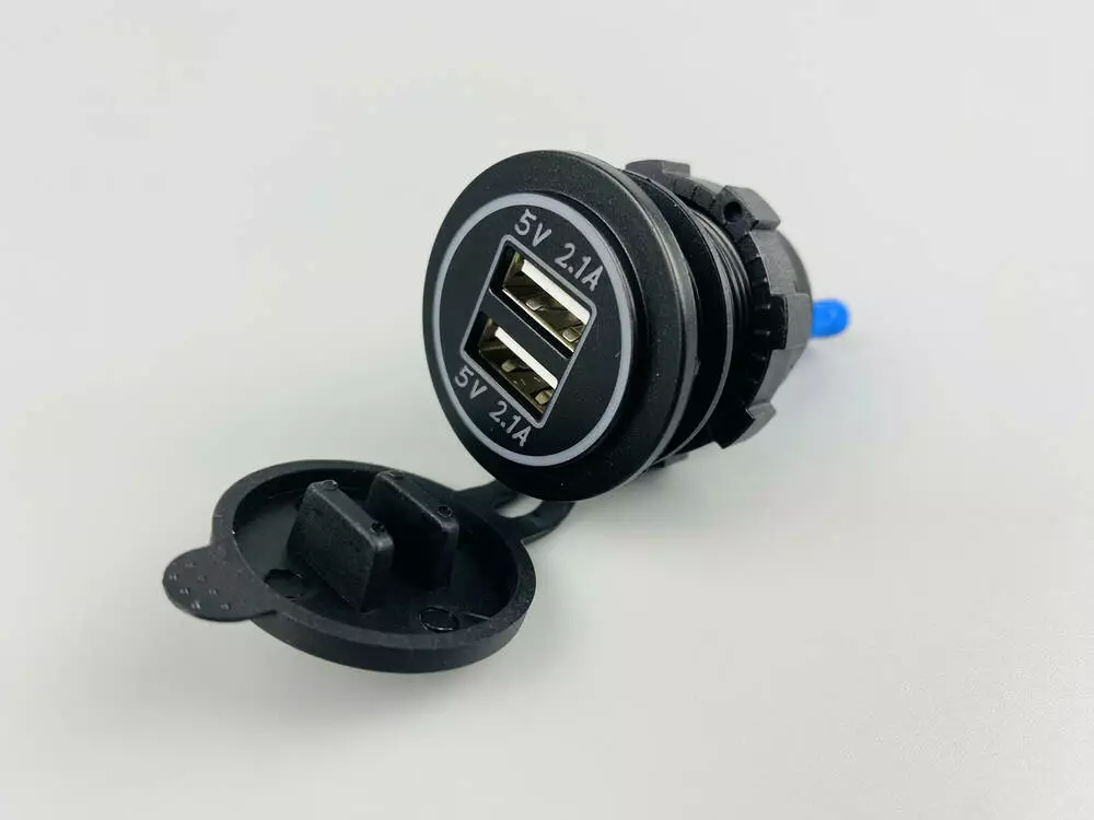 Два USB-порта: Стандартные разъемы для зарядки современных гаджетов, таких как смартфоны, планшеты, навигаторы и т.д. Оба порта имеют одинаковый выходной ток 2.1А, что обеспечивает быструю зарядку большинства устройств.