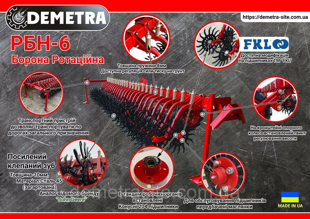 Ротаційна борона, навісна, універсальна ТМ "Demetra"