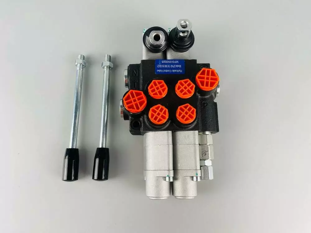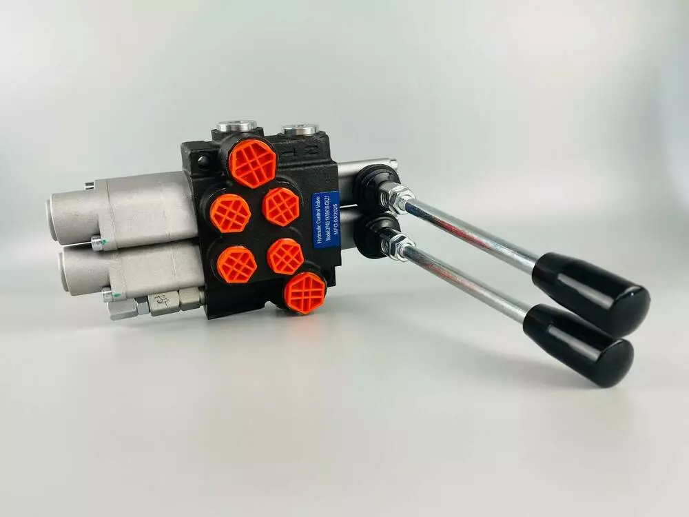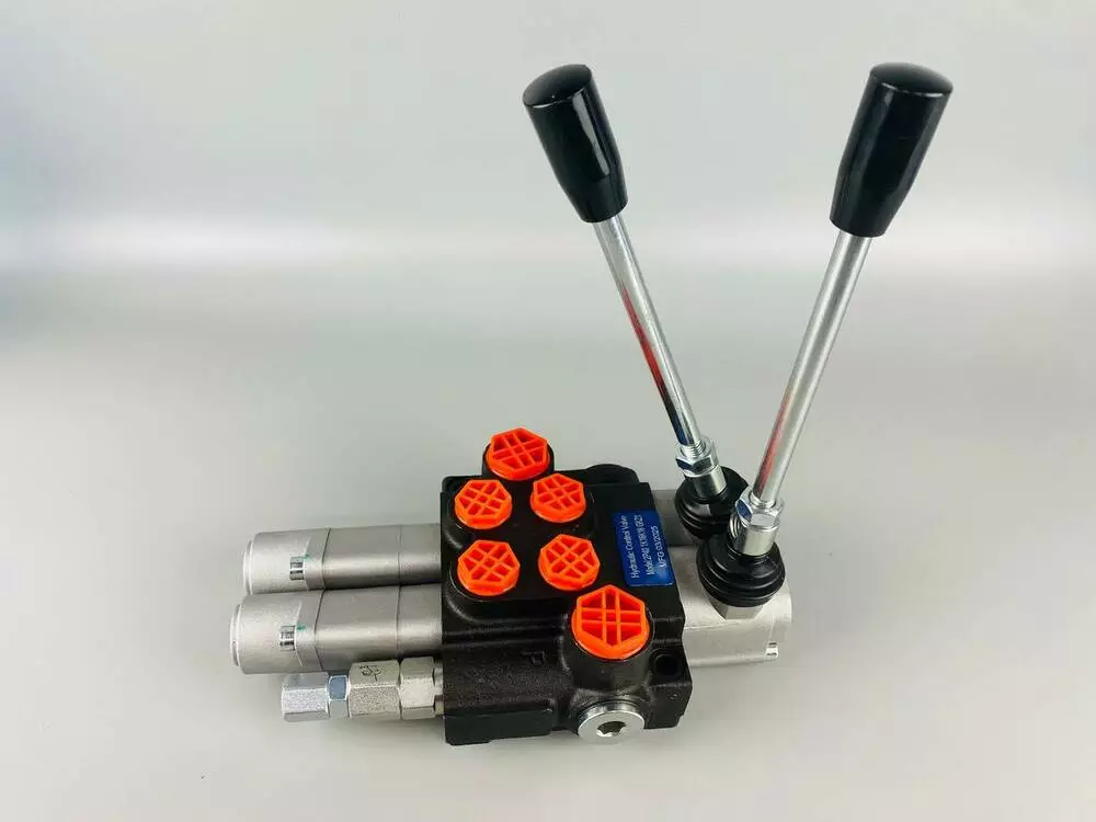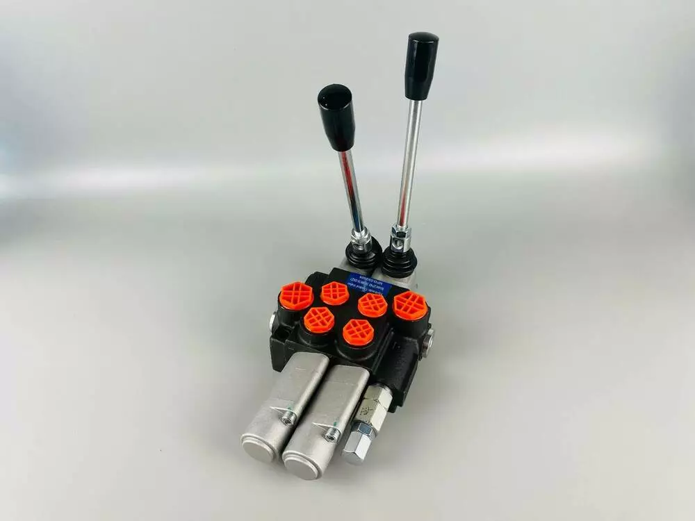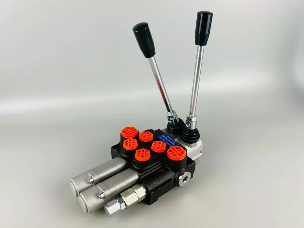 Количество секций и рычагов: 2 секции и 2 рычага. Это означает, что распределитель может одновременно управлять тремя разными гидравлическими потребителями (например, тремя гидроцилиндрами) с помощью отдельных рычагов.