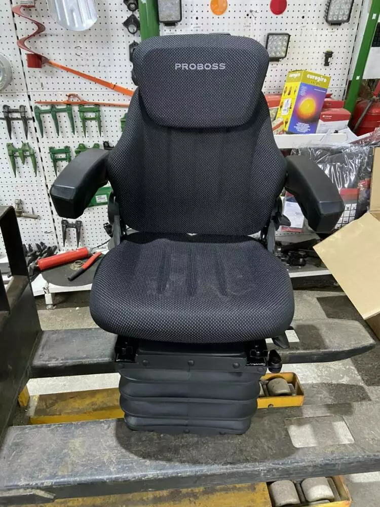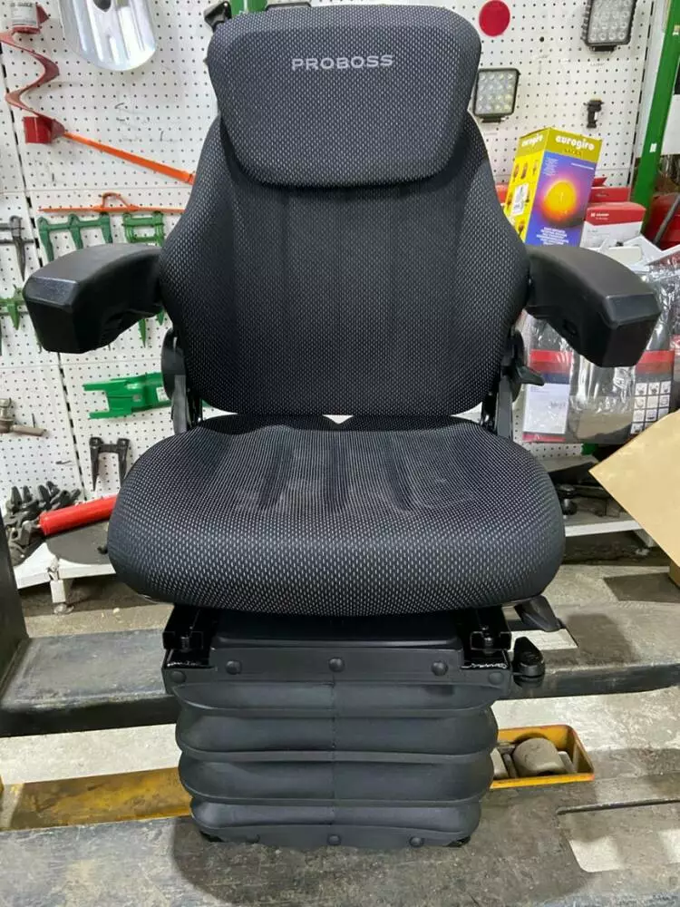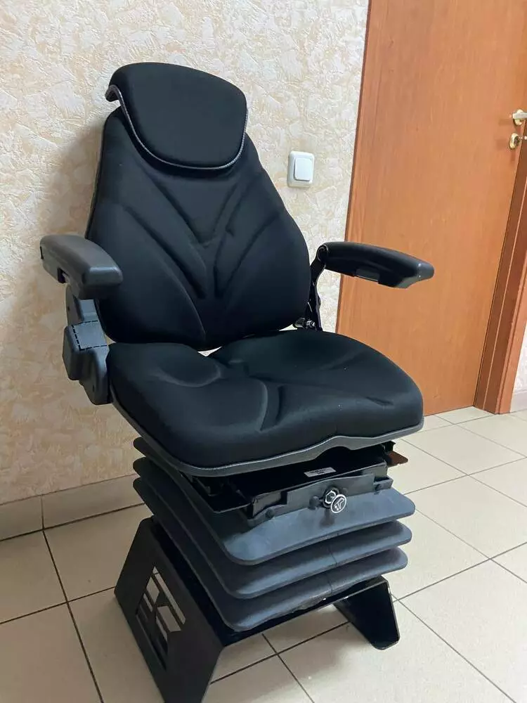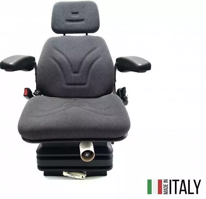 Сидіння з пневматичним амортизатором +регульовані підлокотники + автоматичний ремінь безпеки + тканина GREG + підголовник + датчик присутності оператора для тракторів та комбайнів