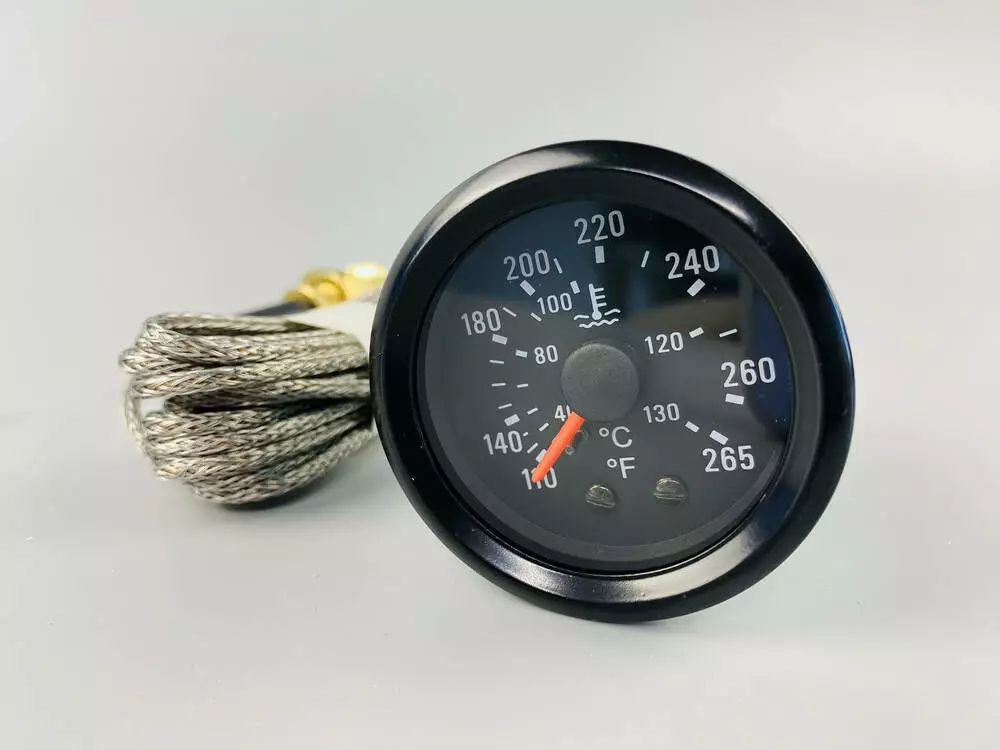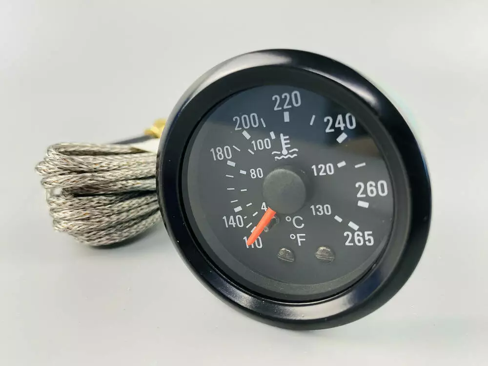 Шкала измерения температуры: В описании не указан конкретный диапазон (например, 0-120°C, 40-120°C), но для механических указателей он обычно составляет от 40°C до 120°C или 140°C. Этот диапазон типичен для контроля температуры охлаждающей жидкости двигателя.