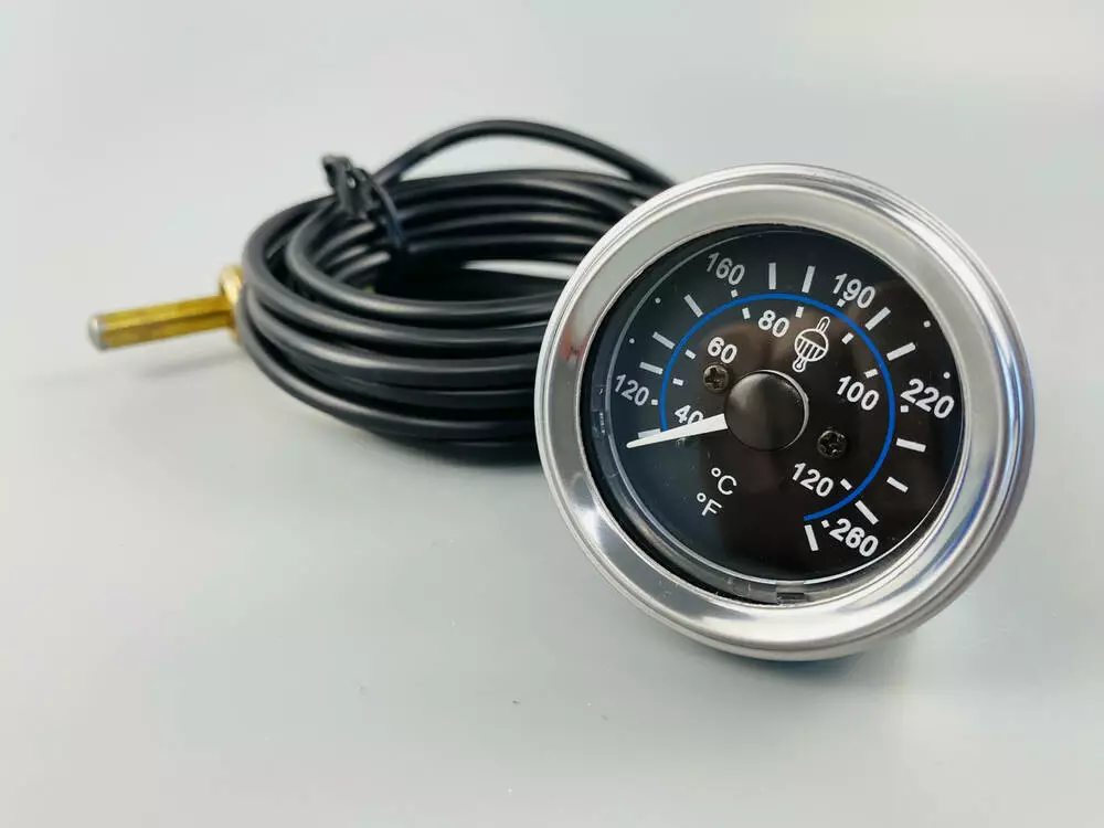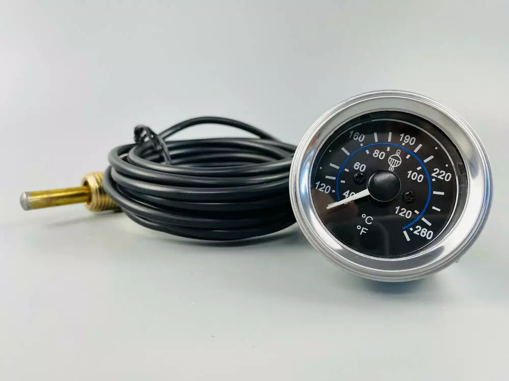 Медная трубка в пластике: Капилляр (гибкая трубка, соединяющая датчик с указателем) выполнен из меди, что обеспечивает хорошую теплопередачу и коррозионную стойкость. Защитный пластиковый кожух предохраняет медную трубку от механических повреждений и воздействия агрессивных сред.