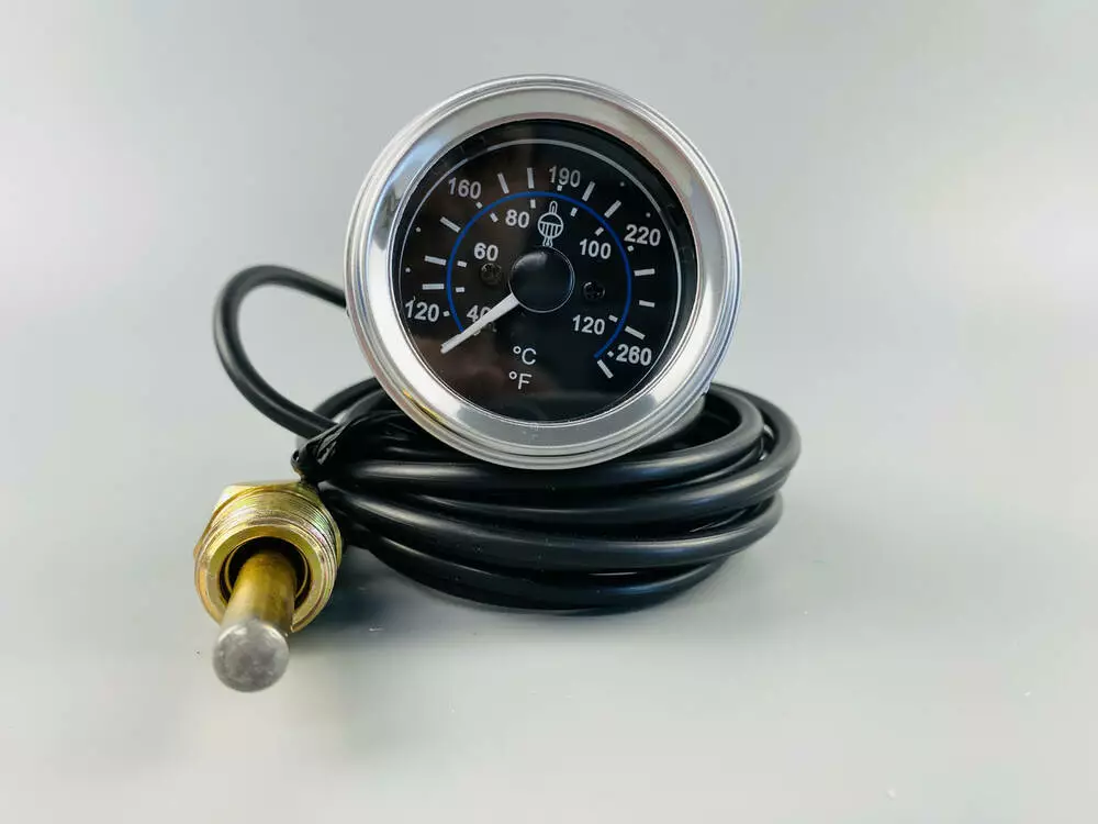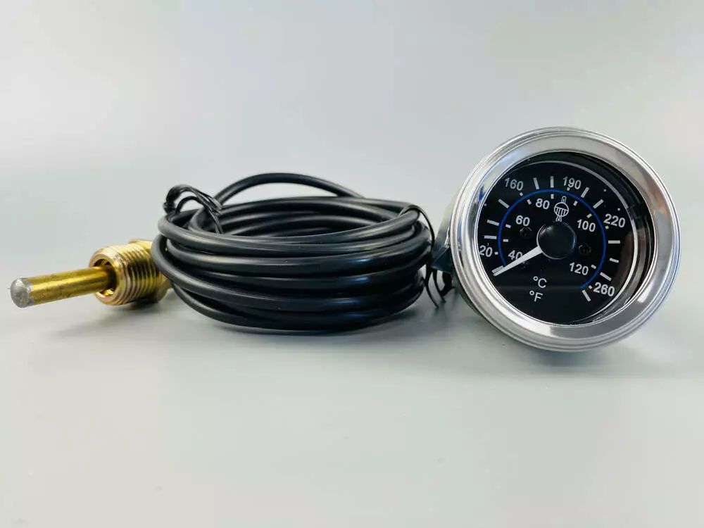 Шкала измерения температуры: В описании не указан конкретный диапазон (например, 0-120°C, 40-120°C), но для механических указателей он обычно составляет от 40°C до 120°C или 140°C. Этот диапазон типичен для контроля температуры охлаждающей жидкости двигателя.